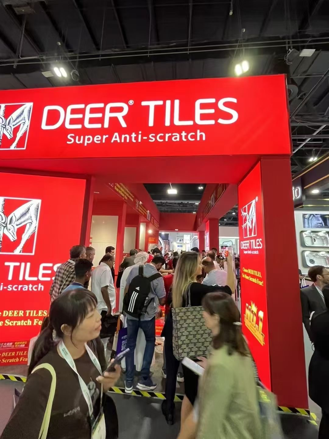 凭借引领全球的超耐磨实力,大角鹿在此次中东迪拜展上高调出圈,成为了展会的焦点,现场络绎不绝的人流,一度挤爆了大角鹿的展位。
